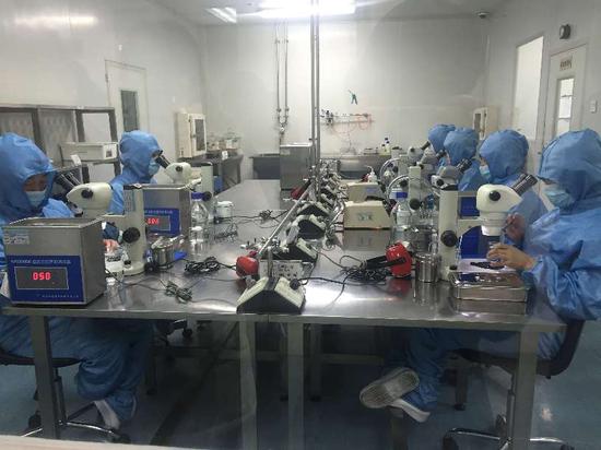 技術(shù)人員在密閉實驗室內(nèi)對眼科產(chǎn)品進(jìn)行超聲波清洗。聶晨靜 攝