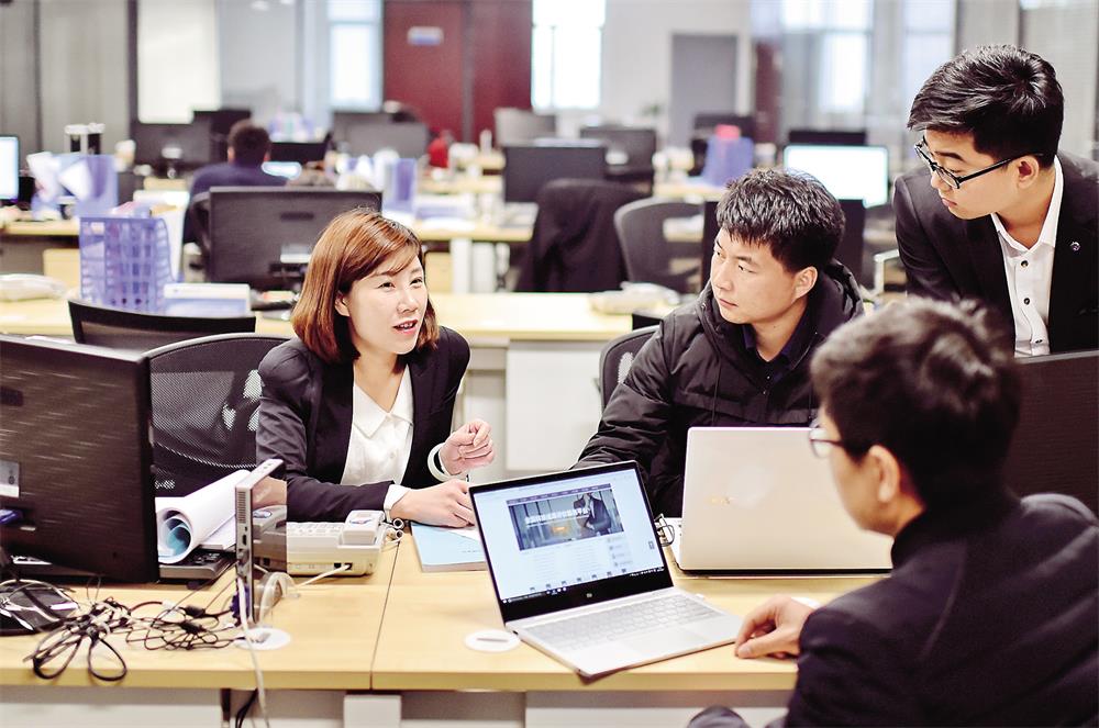3月22日,在石家莊科技大市場河北中科合創(chuàng)科技服務(wù)有限公司,工作人員正在整合梳理一批科技成果評價(jià)資料。