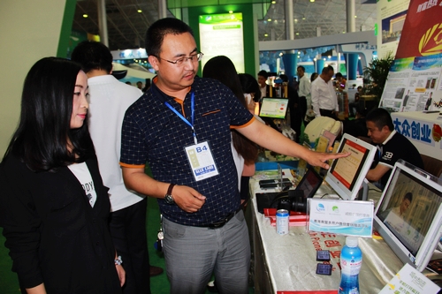 6月18日下午,記者在2015中國青海綠色發(fā)展投資貿易洽談會主會場西寧城南國際會展見到夏晗時,他正在為客戶講解自己的團隊和有關互聯(lián)網知識。