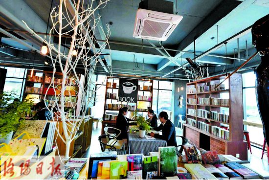 昨日,在高新區(qū)北航科技園新型眾創(chuàng)空間——云集圖書館,園區(qū)工作人員正一邊品嘗咖啡,一邊看書交流。