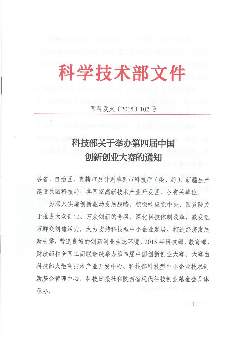附件: 科技部關(guān)于舉辦第四屆中國創(chuàng)新創(chuàng)業(yè)大賽的通知