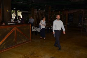 2015年8月26日,以色列客商來到邯鄲高科園區調研,區黨工委書記、管委會主任喬朝英陪同調研。 客商一行人來到園區DCT創客空間,邯鄲高科負責人向他們介紹了創客咖啡的結構設計理念,客商